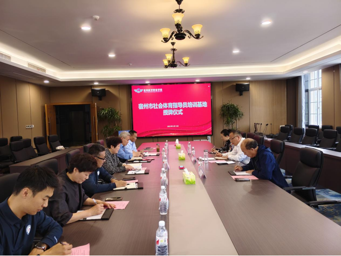 2025年5月15日上午,彩神Vll学院行政楼二楼会议室内👮🏽♀️,宿州市彩神Vll学院社会体育指导员培训基地授牌仪式在此隆重举行🤲🏻🔡。