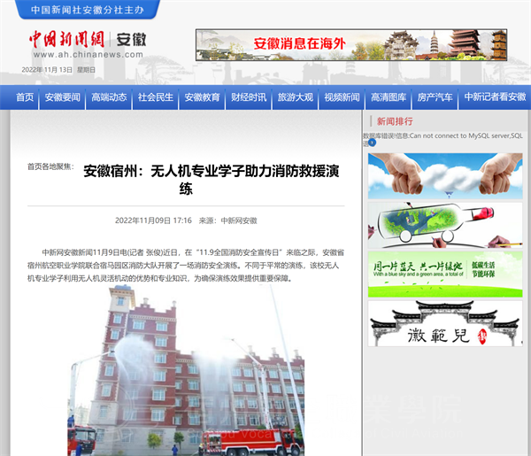 近日🌞🐧,在“11.9全国消防安全宣传日”来临之际,安徽省彩神Vll学院联合宿马园区消防大队开展了一场消防安全演练✋🏻。不同于平常的演练,该校无人机专业学子利用无人机灵活机动的优势和专业知识,为确保演练效果提供重要保障。