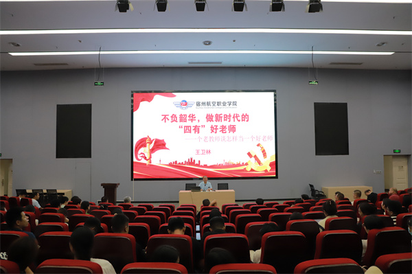 2024年8月1日下午一场以“不负韶华,做新时代的‘四有’好老师”为主题的教师培训在我院学术报告厅举行。本次培训由督导专员、党委书记王卫林主讲,全体教职工参加。