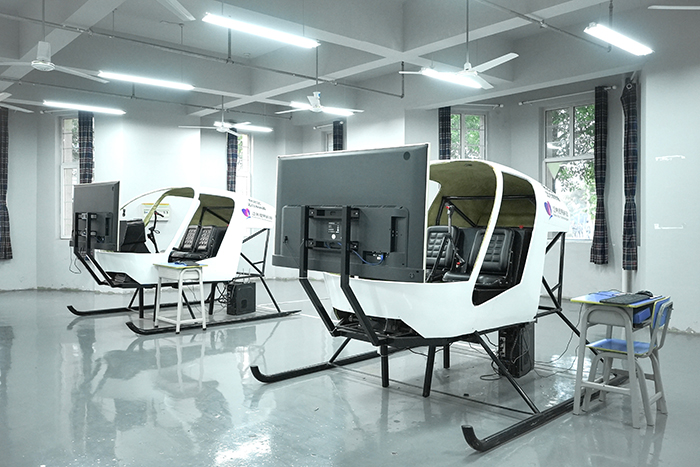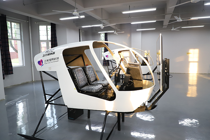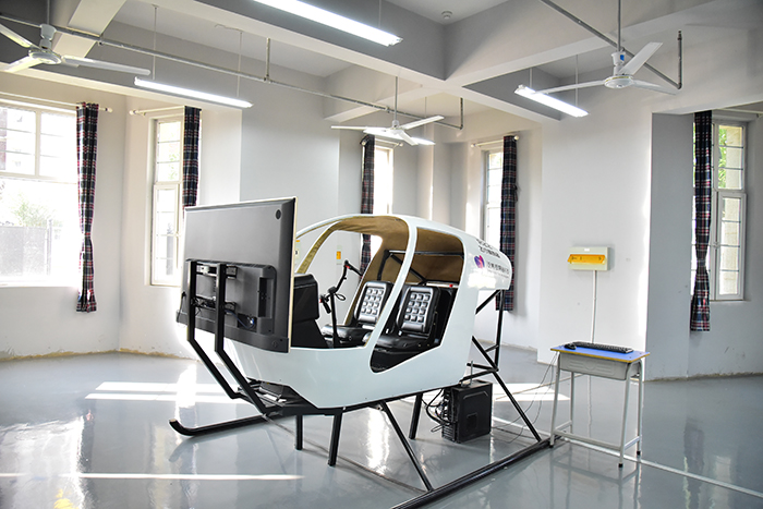 模拟飞行设备-R22是由校企合作公司成都泛美视界科技有限公司自主研发👨👨👧👧,主要要用于定翼机驾驶技术专业学生的地面训练🌑。设备能够模拟驾驶的操作过程和飞行的环境🧎🏻➡️🌃,帮助学员尽快进入到飞行训练环节。