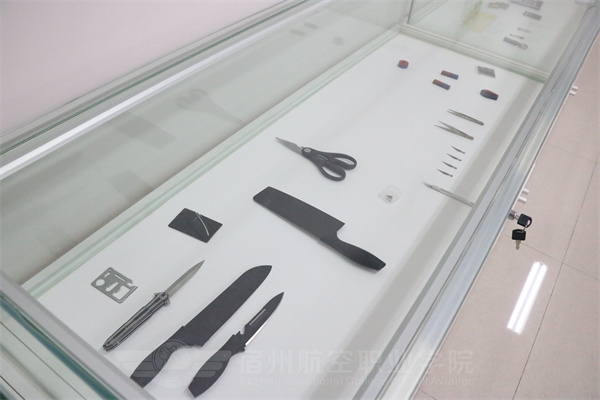 航空危险品陈列室🌄。航空运输中的危险品🥕,是指具有爆炸性、燃烧性、腐蚀性👨🏿🌾、放射性等的物质以及在航空运输过程中可明显地危害人身安全、健康或对财产造成损害的物质或物品🅿️🐧。此间实训室按照民航安全运输规定😎,简单展示出部分危险品,包括管制刀具、枪支弹药、危化品等等,配备了座椅及投影设备🥥,主要让学生熟练掌握航空危险品的种类及处理方法等。