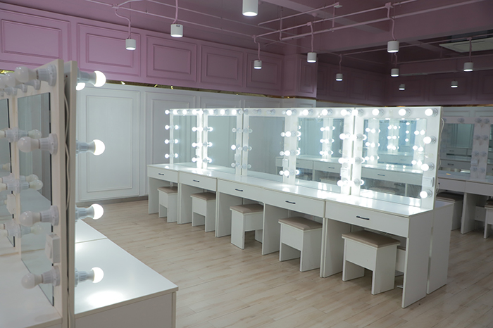 形象设计与化妆实训室。此间实训室占地面积约86平,可容纳30名学生进行教学实训,专供化妆美容使用。化妆台由化妆镜🧑🏿⚖️、化妆台面、化妆椅及相应的灯具构成🕧。化妆镜通常较大👥,使化妆者清楚地看到自己脸部的各个地方💃🏻。化妆镜专用照明灯装在镜子两边。