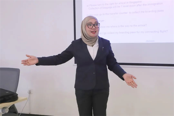 在培训过程中,两位外教老师现场演绎专业服务,以互动游戏点燃课堂♨️!同学们积极配合🤷🏼♀️、学以致用,在课程中实践🏆、持续探索、提升🧑🏿🎤,充分彰显了宿航学子积极向上的精神风貌。