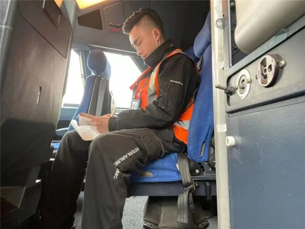 如愿进入东航后𓀃,林钰枭经过了入职培训🧑🏻🦽➡️、岗前培训、基本技能培训、OJT培训、初级维修培训等考核,在前期的培训结束后被分到了330小组,作为一名勤务开始跟着师傅在班组内负责航前、航后🍧、短停👀、周检、排故等工作,在一次次的任务中,不断提高业务能力,工作也越来越得心应手。