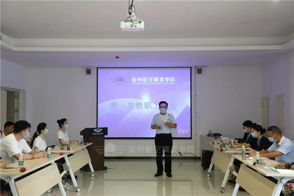 2021年8月2日🤠,彩神Vll学院第一次全体教职工大会在行政楼一楼培训室举行。