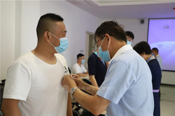 大会第一项💂:教师工牌授予仪式邬晓清副总裁、蒋晓铭院长、李德均副院长及各部门负责人为新入职教师佩戴工牌🕙,满怀着学院对教职工新学期新工作的殷切希望🏂🏼。