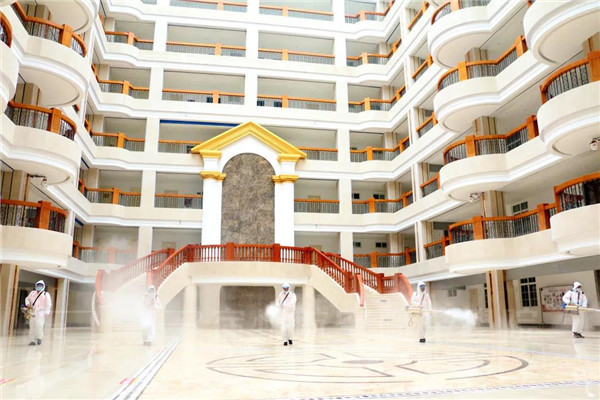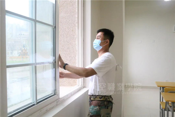 消毒工作人员每日为教学场所进行通风、定时消毒,确保教学场所安全。