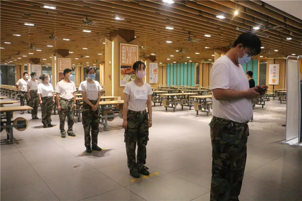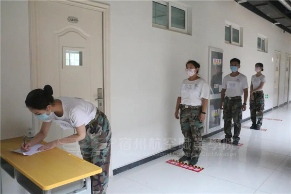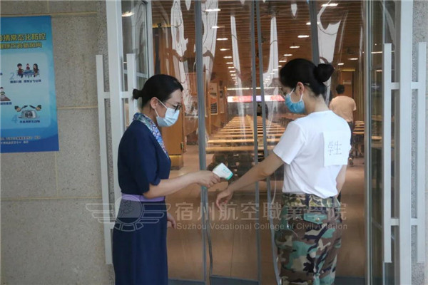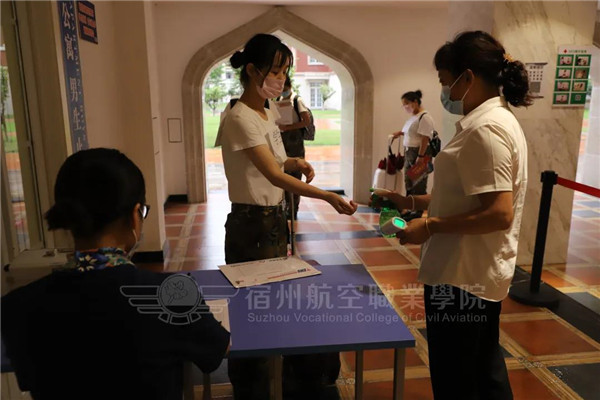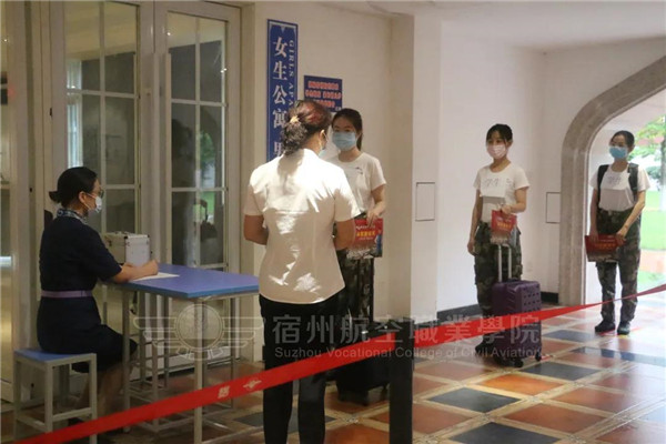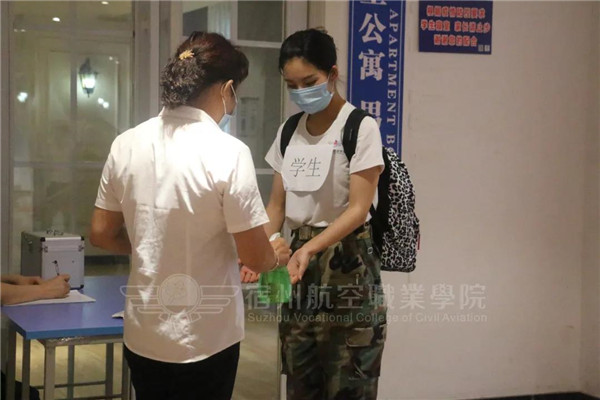 学生间隔1.5米♏️,有序进入寝室,并在入口处进行二次测温、消毒及登记。
