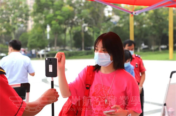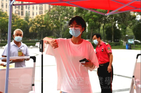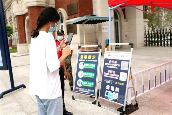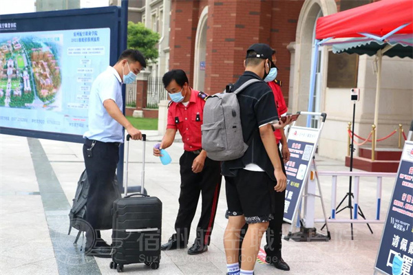 严控校园安全,为同学们的安全保驾护航🖍。工作人员在校门口引导着萌新们进行行李消毒🏒、测量体温、核实健康码、检查核酸检测报告等,符合要求者方能进入校园。