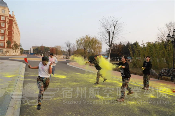 环校跑路线上设有5个彩粉站点,在奔跑者经过每个站点时,站点工作人员,向小伙伴抛撒代表祝福的各色玉米淀粉.