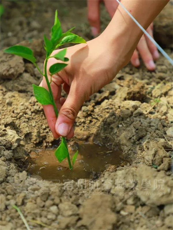 弯腰埋头栽种🛁、亲手刨坑,宿航学子们乐于实践、勇于探索🌥,不怕苦不怕累,与自己的劳动成果合影。