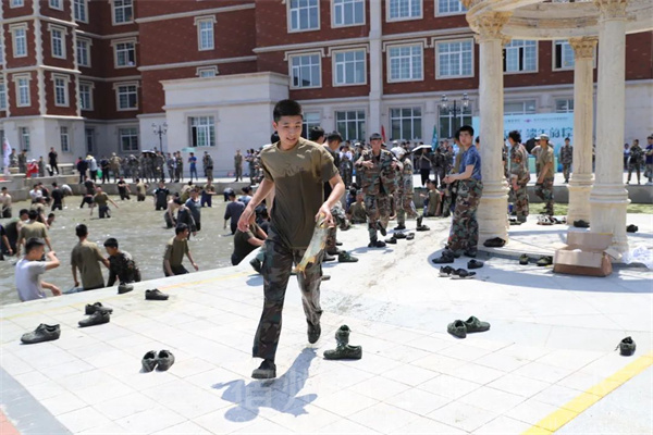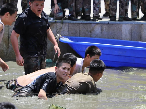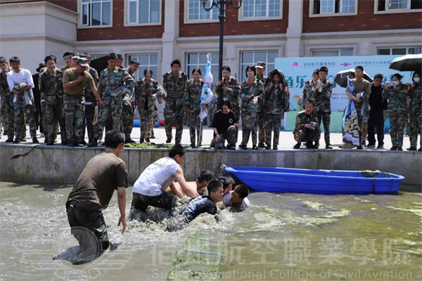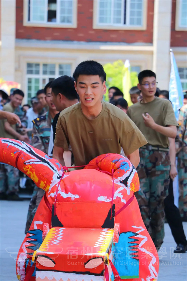 宿航学子们骑坐在充气“龙舟”上,以脚为“桨”,伴随着整齐有序的口号💱,迈着一样的步子,快速向前“划”行☄️🚳。现场,助威声呐喊声不断,气氛紧张而热烈。