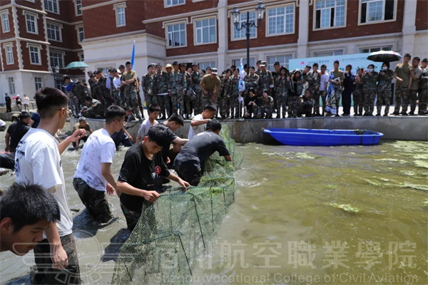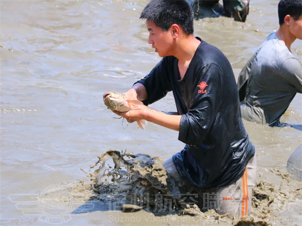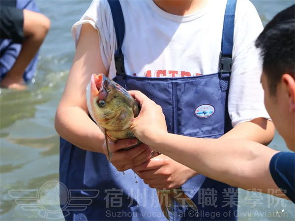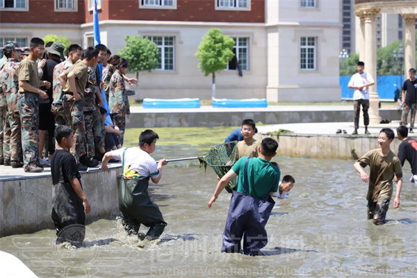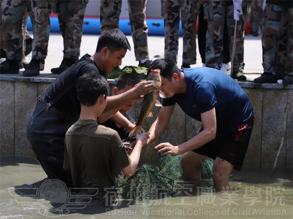 宿航池塘摸鱼是这次端午活动同学们最喜欢的环节,宿航师生化身捕鱼达人,有些同学甚至顾不得换上捕鱼装,挽起裤脚便跳进池塘🔽,加入到捕鱼阵营中👨🏼🎤。