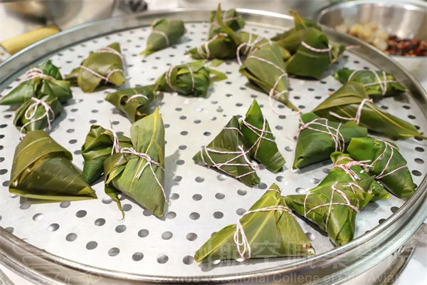 除了气氛最火爆的捉鱼环节,宿航学子们也在不同场地开展了动手包粽子💂🏽♂️🧙♀️,提前准备好布满琳琅满目的端午食材🛡,卷粽叶、放食材🍸、折粽叶🖤、系长绳🏌🏼♂️,近距离感受和体验中国传统文化。