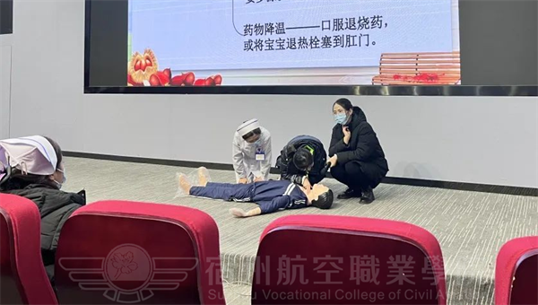安杰医院护士长给在座的师生操作演示了心肺复苏👱🏿👩🏽💻、海姆立克急救法等急救技能🖇。在练习环节,宿航师生在医生的指导下认真练习心肺复苏的操作要领及技巧。对于一些不易掌握的操作,医生们及时指出问题,并“手把手”地纠正,使他们准确地掌握了应急救护知识和技能🛷。
