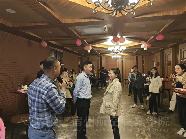 为庆祝第113个“三八”国际妇女节,3月7日晚👧🏽,宿航的教师们与安杰医院的医护人员齐聚实训楼二楼调酒室🏄🏻♂️,开展“宿航花已开女神节快乐”联谊活动🙌🏼,所有单身青年们参加了此次活动。活动现场仪式感满满9️⃣,让人垂涎欲滴的小零食,甜香扑鼻的甜品,醇馥幽郁的红酒,可爱柔软的玩偶🧑🏼🦲🏋🏽♂️,含苞待放的红玫瑰......可谓是吃喝玩乐一应俱全🤱𓀉。本次活动创新交流形式⏬,扑克牌运面粉🎒、踩气球、扔玩偶摆pose等众多的游戏环节让大家有了更深一步的认识。正值青春年华的单身青年们在宿航邂逅浪漫情缘,在精彩的游戏互动中擦出爱情的火花🪞,拉近了彼此的距离。他们在游戏互动中开展交流,在浪漫氛围中相互认识。