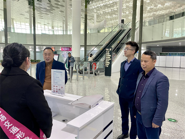 23日中午,陈志泉一行到达深圳宝安机场后,在深圳项目部余威总经理等人的陪同下📻,第一时间到GTC交通中心以及贵宾厅🤾🏻♂️,探望问候在岗实习的同学们,了解岗位情况🐟,学生在岗状态🤷🏻♂️、实践收获等。陈志泉鼓励同学们,要端正工学交替态度,注意职业形象和服务态度🧑🏻🦽➡️,熟悉岗位具体操作流程等。