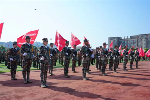 军体教官代表周金虎在发言中强调了职场启梦训练的重要性🤟🏽,并向同学们提出了要求:一是要严格遵守训练纪律,服从命令,听从指挥;二是要发扬吃苦耐劳的精神,勇于挑战自我,突破极限🧑🏿🎓;三是要学会团结协作,与同学们共同进步,共同成长。