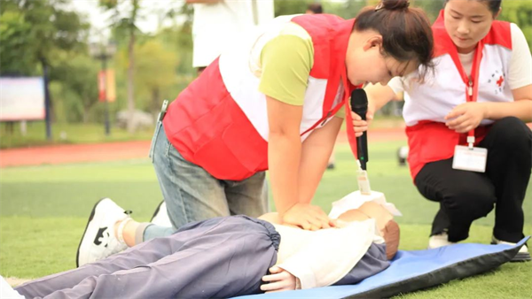 活动现场,精心设计了多个急救模拟场景。在“运动损伤急救区”🫃,红十字会指导老师与学生们共同模拟了运动中常见的扭伤👩⚕️、擦伤等紧急情况,现场演示了正确的包扎、冷敷等急救措施🌵,并邀请学生亲身体验,确保每个学生都能掌握基本的自救互救技能😰。