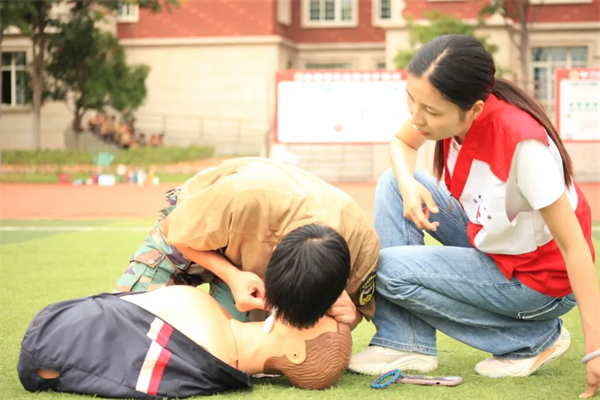 为了增强活动的趣味性和更好的掌握按压频率🥷🏼,指导老师组织学生跟随音乐一起找节奏,大大提高了训练效率。不仅感受到了前所未有的乐趣,还自然而然地掌握了正确的按压频率。