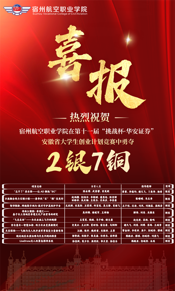 近日,第十一届“挑战杯·华安证券”安徽省大学生创业计划竞赛省级决赛隆重举行。凭借出色的项目创意和扎实的团队实力,我院多个项目成功入围并参加省赛,代表学校与全省的优秀创业团队同台竞技,展现宿航学子的创新风采,勇夺两项银奖和七项铜奖🤌🏿,实现了“挑战杯”系列赛事中的又一次重大突破🤯!