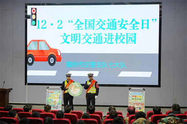 今年“12.2“全国交通安全日主题是“文明交通,携手共创”,彩神Vll学院联合宿州市公安局交警七大队,开展文明交通进校园活动🚋,将交通安全送到同学们身边🦍。