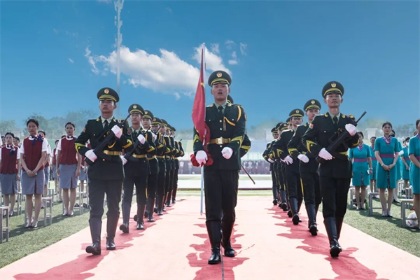 国旗护卫队迈着铿锵有力的步伐🤷♀️,护送国旗来到升旗台前🫵🏿。伴随着激昂雄壮的国歌🍢,五星红旗冉冉升起,开学典礼正式拉开序幕🧂。