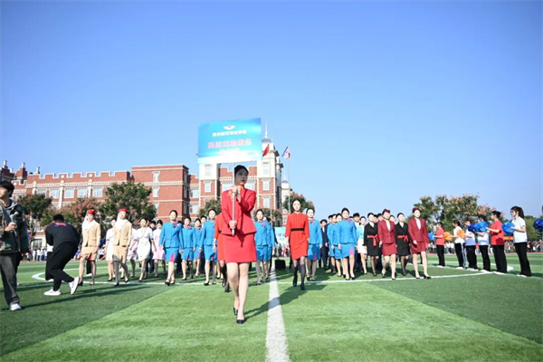 看!迎面走来的是民航管理学院方队🈳。他们身着笔挺的制服,步伐整齐划一,意气风发。作为未来蓝天的守护者与管理者,他们此刻的步伐,踏出的是对规章的敬畏🧜🏿‍♂️,是对责任的担当。那坚定的眼神、挺拔的身姿🫷🏻,仿佛在向我们宣告:他们不仅能用专业知识翱翔万里航程,也能在赛场上挥洒汗水、一展雄风。他们的口号响彻云霄📷,他们的信念与梦想,正随着这矫健的步伐,一同起飞👨‍💼!