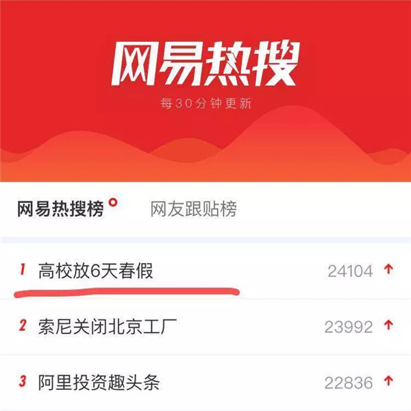 除此之外⚄,在上网输入“高校”两个字💂🏿‍♀️,首先出来的就是“高校放6天春假”,可见“泛美春假”这个决定是多么的深得人心。