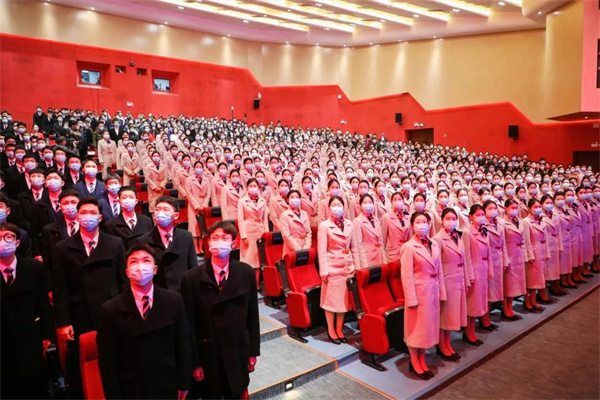 开幕式伊始🧍♂️,随着响亮的国歌奏响现场,所有与会嘉宾及师生起身站立,静默目视,庄严肃穆👸🏽。满堂高亢有力的节奏之音,点燃了决赛启动仪式前的沸腾热血♡🤸🏼。