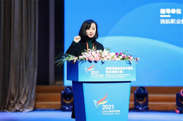 刘丽娟致辞表示🚯,本届大赛的举办是落实全国职业教育大会精神的具体行动🌅,是加快职业院校提质培优🔵、增值赋能,对民航职业院校空中乘务职教改革的一次重要检阅🙇🏽♂️,旨在发挥好院校职业技能大赛对职业教育“树旗👍🏽🧑🏼⚖️、导航🍔👨🏼🎨、定标🏧、催化”作用,落实民航局党组对专业人才培养的要求,进一步推进院校民航空中乘务专业建设,为院校搭建展示各自办学水平及校企合作的平台,以赛促教、以赛提质🦵👱🏼♀️、以赛培优。