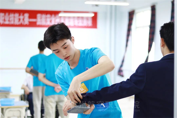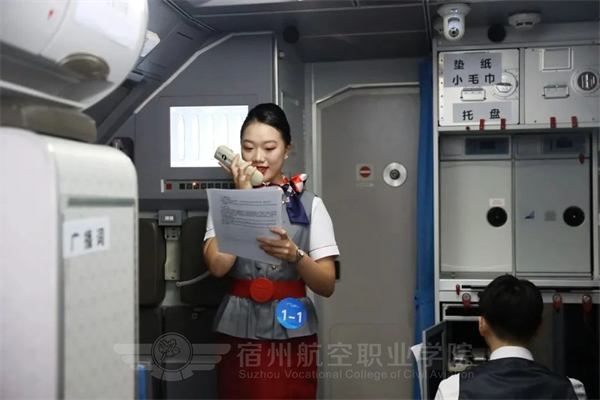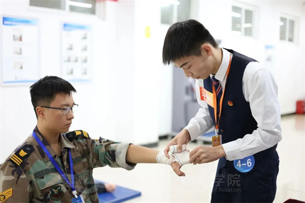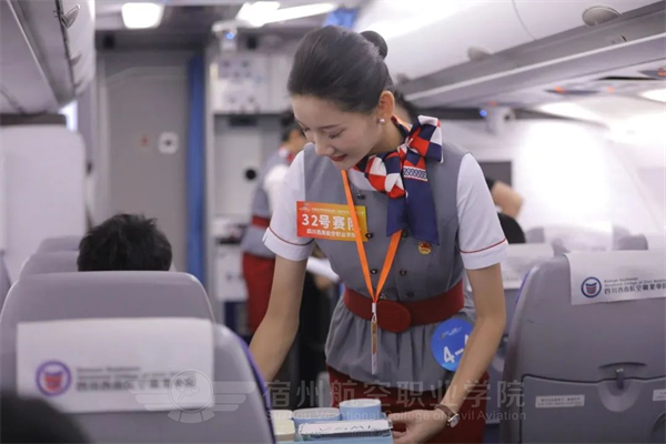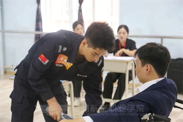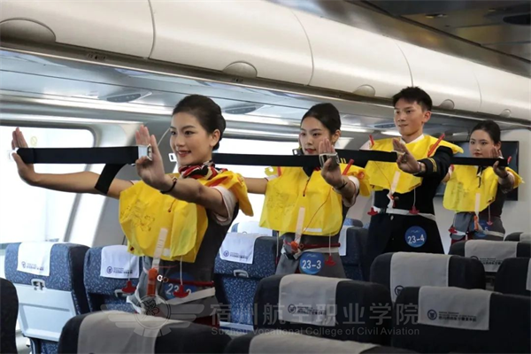 强技能,筑安全🐋,心服务🧝🏼♀️,展风采。围绕空乘专业综合素质要求🏂,重点考察客舱安全与服务技能的综合运用情况,在现场进行了安全演示、模拟舱、应急设备使用🙇♂️、机上救护等实操项目比拼,职业范十足。