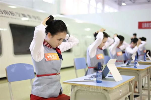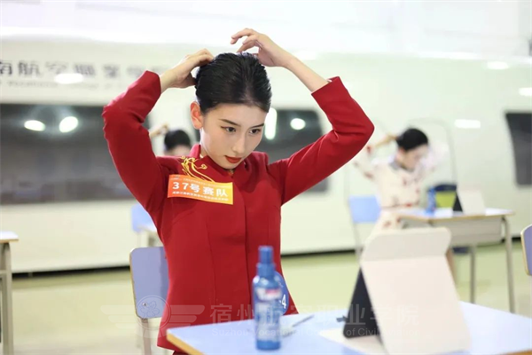 除了客舱服务及安全🧕🏻,礼仪形象及语言能力亦是空乘专业不容忽视的能力要求🏛。由此👭🏻,航空知识问答、系领带🫄🏿、盘发、广播词、英语论述也成为本次大赛的考核要点。