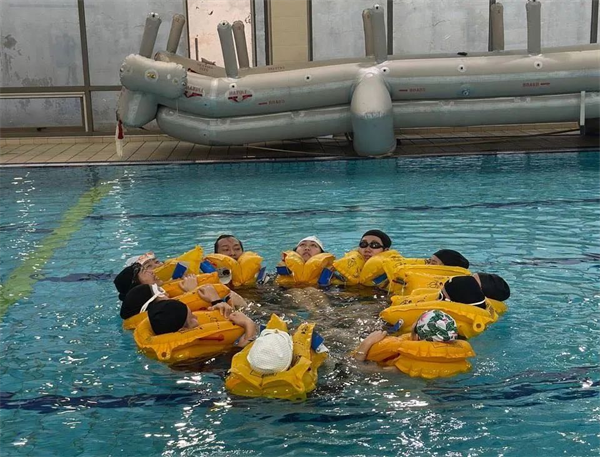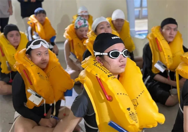 随着应急撤离口令响起,穿戴好救生衣的同学们绷紧安全这根弦🎛👎🏻,快速有序跳水💵,并完成引导旅客撤离👩🏻‍🚀、水中互救和集体取暖等流程⛓️‍💥👮🏻‍♂️,在高度还原的模拟场景中亲身体验水上紧急迫降,体会安全背后的职业责任。