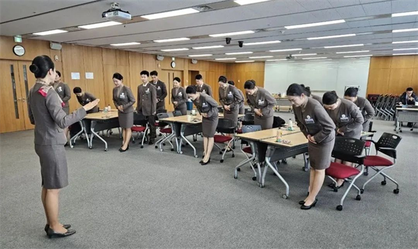 迈技能进阶👫🏹、获专业成长。同学们参观了韩亚航空本部及实训中心,沉浸式体验五星航司乘务员培训标准,并参加了水上紧急迫降训练、模拟客舱服务、红酒及礼仪学习等专业技能培训课程。