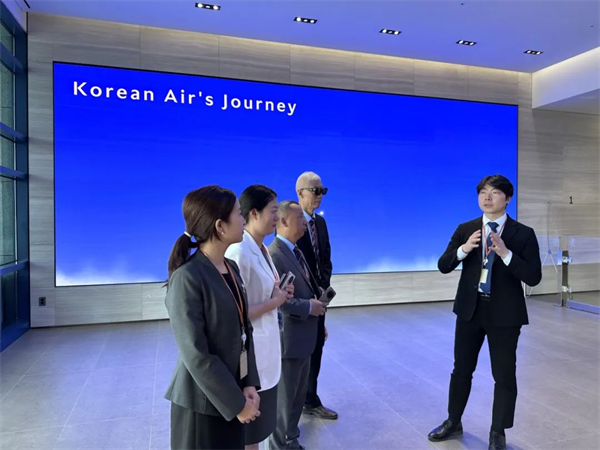 签约仪式结束后,泛美教育集团代表团一行前往参观了与韩国航空大学同属一个财团的大韩航空🧕🏽,近距离感受了其总部先进的核心运营环境🫕🤘,深入了解了世界级航空企业的管理理念及企业文化等。在参观中,双方围绕航空产业实践与教育融合模式进行深入研讨,探索产学研协同创新的可行路径,尤其探讨了共建航空实训基地👩🚒💟、探索定制化人才培养项目😼、开发基于真实岗位需求的实践性课程体系等产教融合方向⚗️,为未来合作注入行业前沿动能🤣。