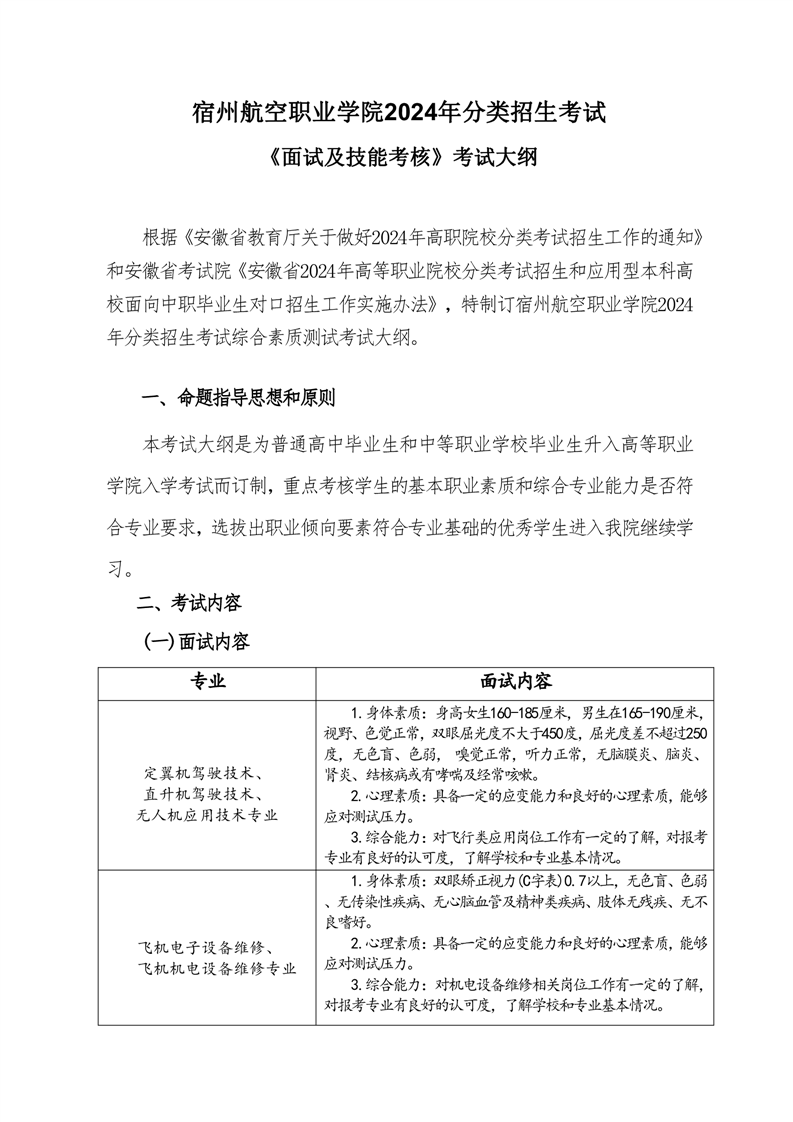 彩神Vll学院2024年分类招生考试 《面试及技能考核》考试大纲