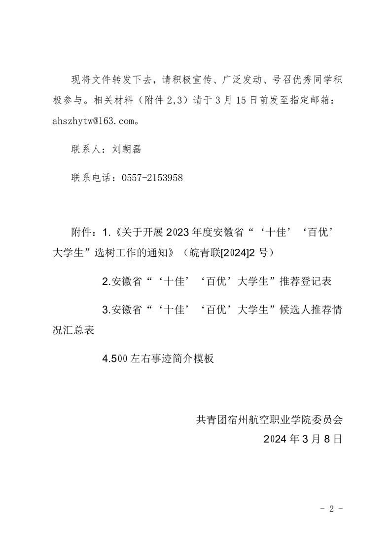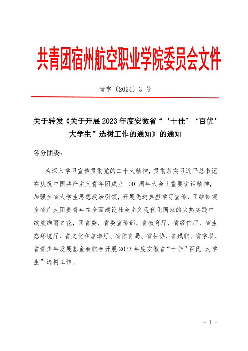 附件1🚴🏼⚃:关于开展2023年度安徽省“‘十佳’‘百优’大学生”选树工作的通知.pdf