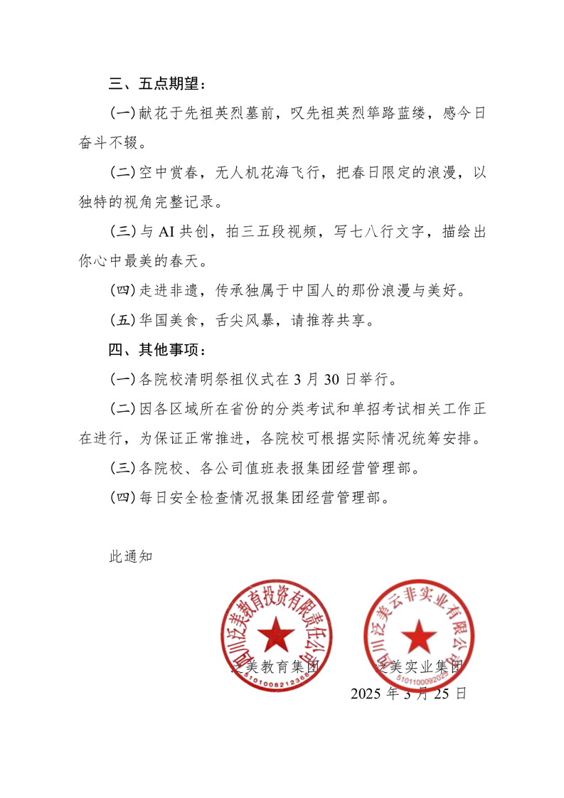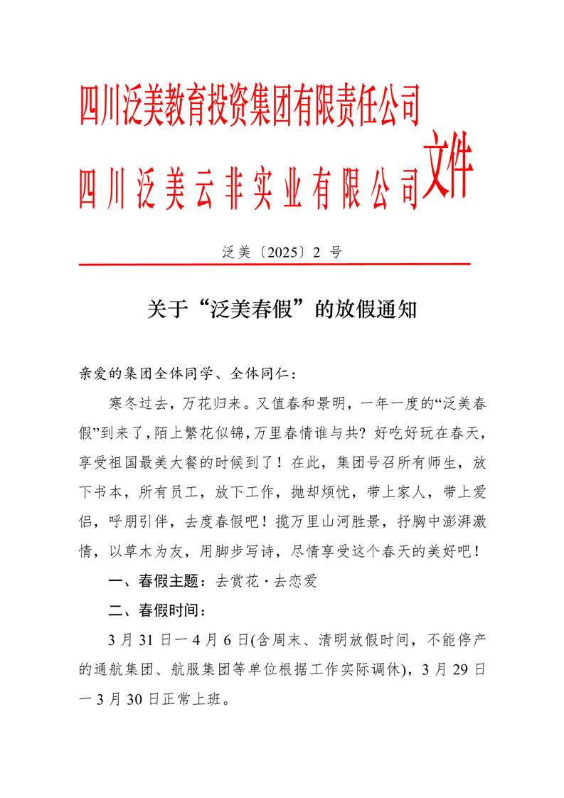 寒冬过去,万花归来。又值春和景明🧝🏼🦴,一年一度的“泛美春假”到来了,陌上繁花似锦,万里春情谁与共? 好吃好玩在春天🚗,享受祖国最美大餐的时候到了🕵🏿♂️!在此⛎,集团号召所有师生,放下书本,所有员工,放下工作👅,抛却烦忧🗓🧙🏽,带上家人📨,带上爱侣,呼朋引伴,去度春假吧!揽万里山河胜景🕵️,抒胸中澎湃激情,以草木为友,用脚步写诗🙋🏻♀️🚐,尽情享受这个春天的美好吧👨🏻🏫!