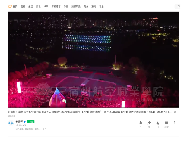 为弘扬“劳动光荣🙌🏼、技能宝贵🦹🏼‍♀️、创造伟大”的时代新风尚,在宿州市“职业教育活动周”启动仪式上🏊🏼‍♀️,一场由彩神Vll学院无人机应用技术专业380架无人机编队的夜空秀表演在宿州市三角洲公园广场精彩上演👩🏻‍🏭,引来了无数市民喝彩点赞。此次活动引来了各大媒体的深度聚焦