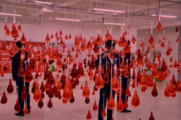 2000枚包裹着红色药水的安全套仿佛红色炸弹,高低有致的垂挂在展览现场,获得了同学们的高度关注🧗🏿‍♀️,令人震撼。展览以红色药水代指病毒,用安全套包裹药水,防止“病毒“与人体的接触🧑🏽‍🚒,旨在呼吁人们正确使用安全套,保护自己和他人🌇⛔️。