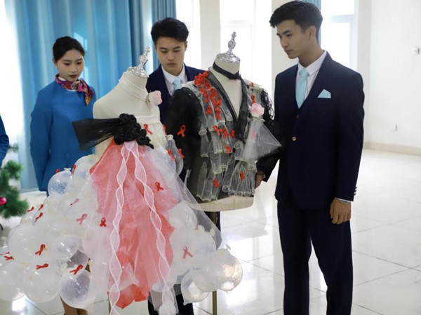 展览中还展示了宿航学子用安全套设计制作的时装,创意的巧思、精致的造型🍮,让这些“安全套”不再是难以启齿的东西,而化身为同学们增加“防艾”知识的载体🥎。