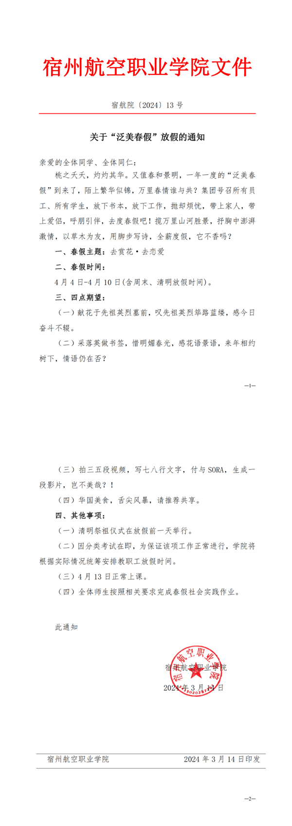 学院介绍📿,放春假并不会影响正常课程的时间,是将周末、清明节假期做了适当的调整,让师生有集中休息的时间★👨🏽🦳。学院也将围绕春假主题给全体师生布置好相对应的社会实践作业,引导学生在实践中提升。