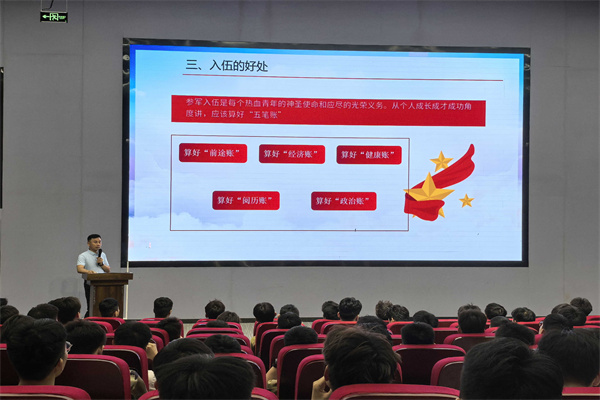 5月22日,学院征兵办公室主任关振东面向23级、24级学生开展征兵政策专题讲座🧖🏼♂️,围绕“政治账、经济账、成长账👨🏿⚖️🚷、荣誉账👩🏻🦯➡️、机遇账”五大维度展开深度解析,近200名有入伍意愿学生参与🤘🏽,此次讲座通过政策解析、案例分享、互动答疑模式,结合当前工学交替、实习就业等情况,强调了参军入伍对于个人成长的重要意义💆🏼♂️,帮助同学们全面了解参军入伍的具体流程🧙🏻♂️,进一步增强了大家参军入伍的信心🧍🏻♀️。