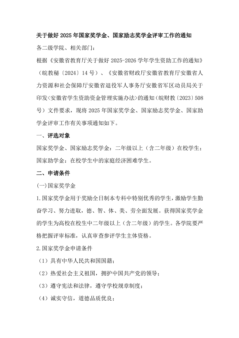 关于做好2025年国家奖学金😅、国家励志奖学金评审工作的通知