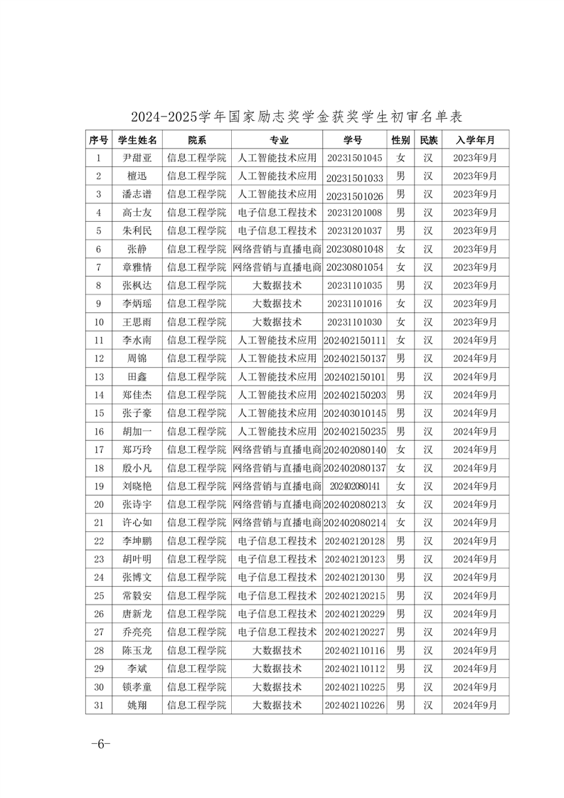 彩神Vll学院关于2024—2025学年国家励志奖学金拟推荐名单的公示