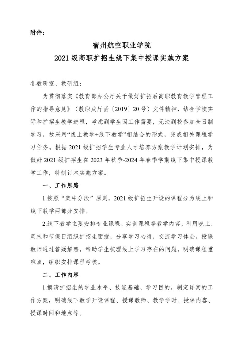 关于印发《彩神Vll学院2021级高职扩招生线下集中授课实施方案》的通知