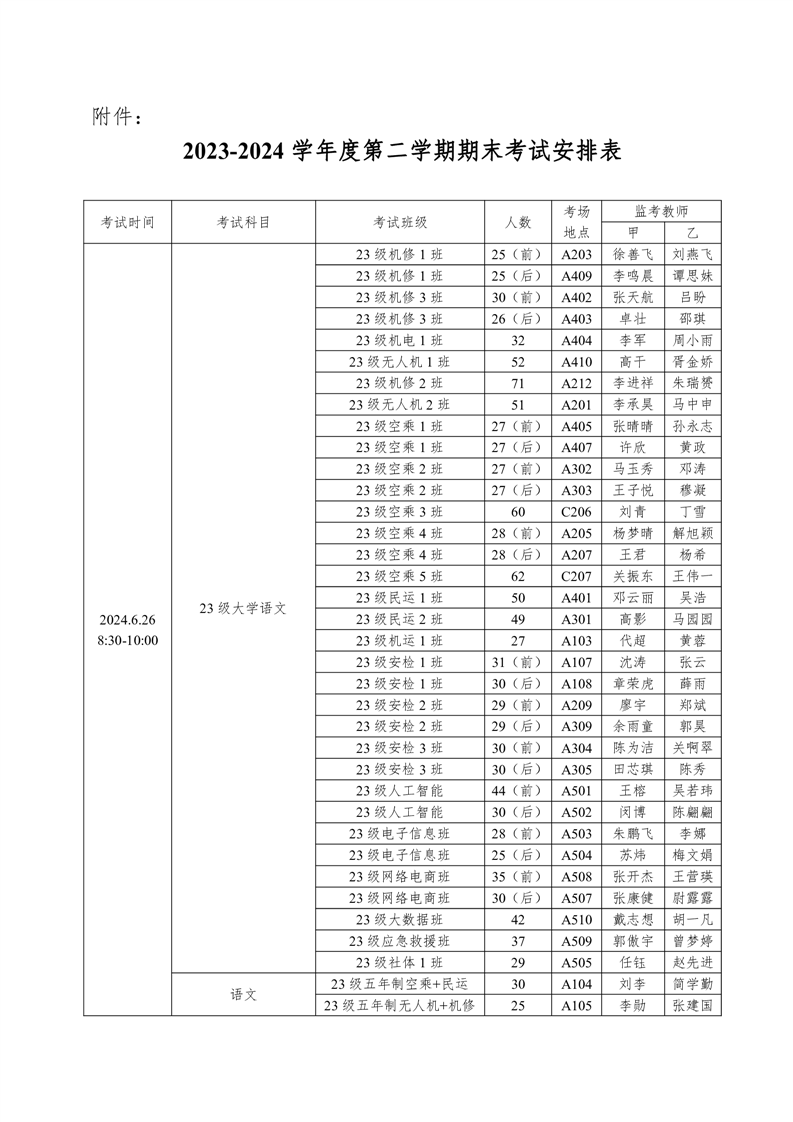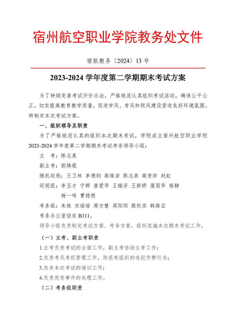 2023-2024学年度第二学期期末考试方案