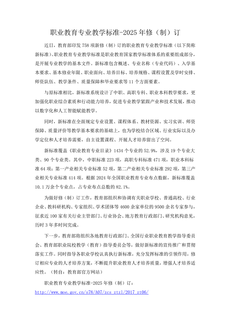 关于转发职业教育专业教学标准-2025年修(制)订的通知
