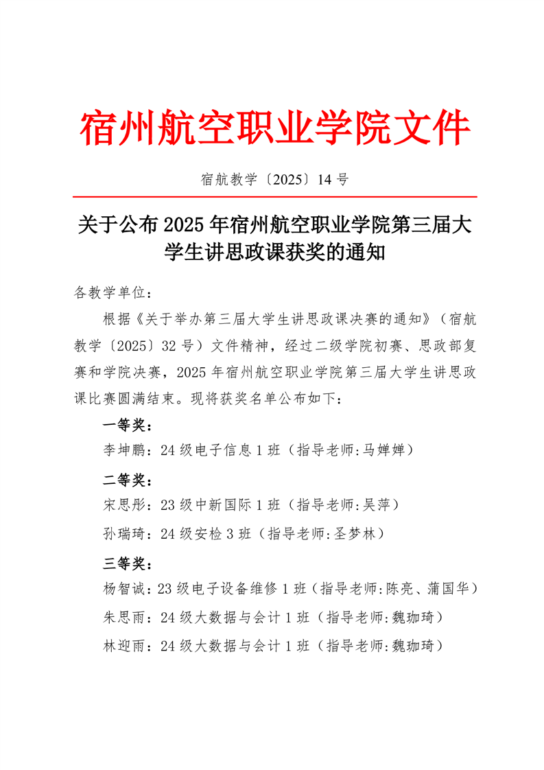 关于公布2025年彩神Vll学院第三届大学生讲思政课获奖的通知